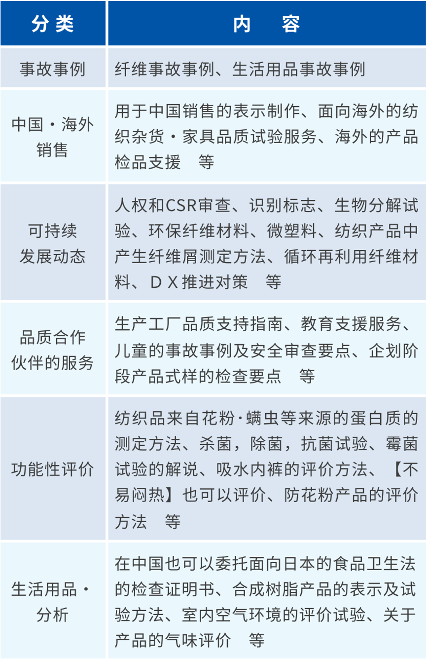 另外,除了展出了以前就廣受好評的衣料品事故案例分析外,還展出了功能性試驗和QC工廠監(jiān)查的展板。同時還召開了關(guān)于功能性試驗和QC工廠監(jiān)查的研討會。